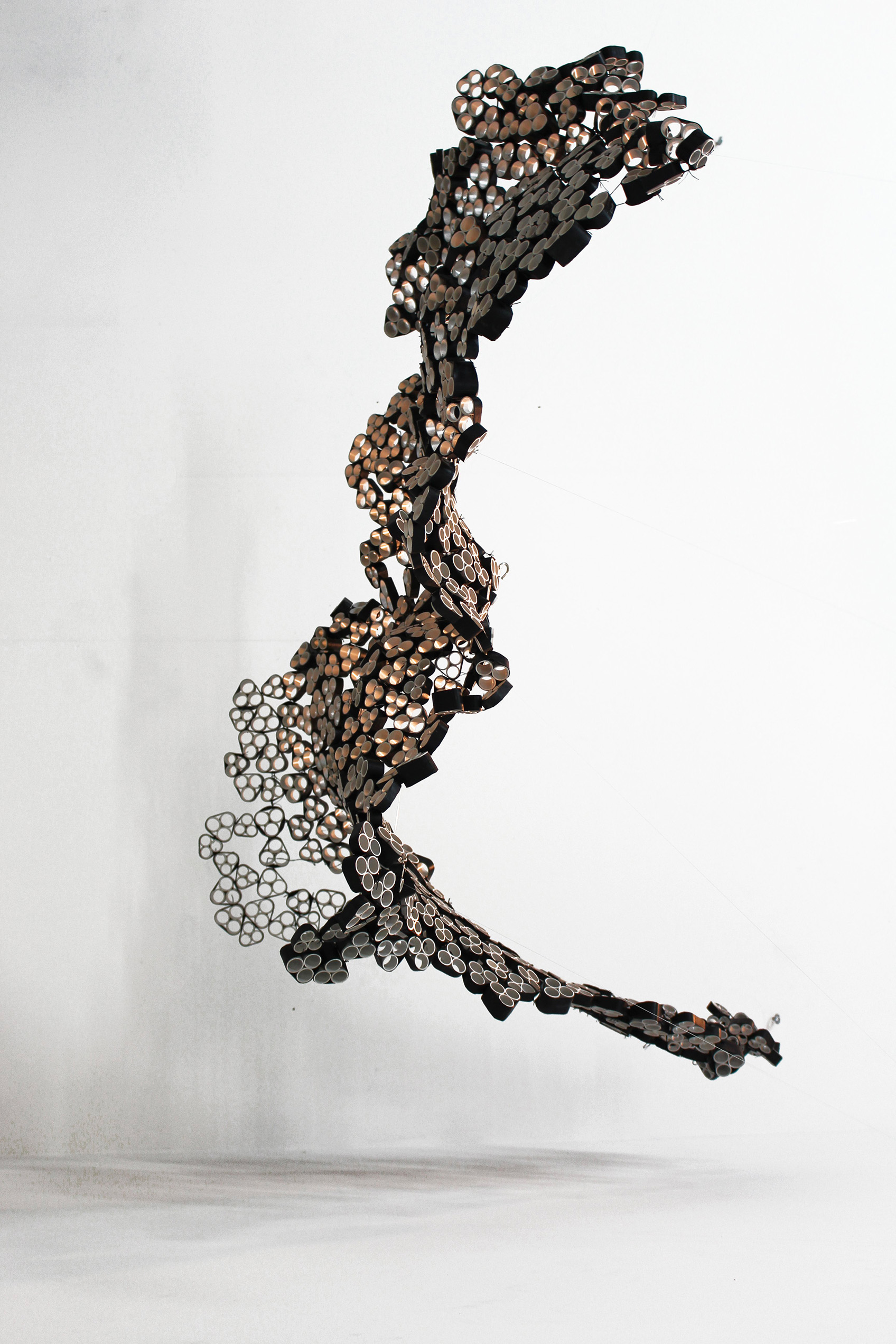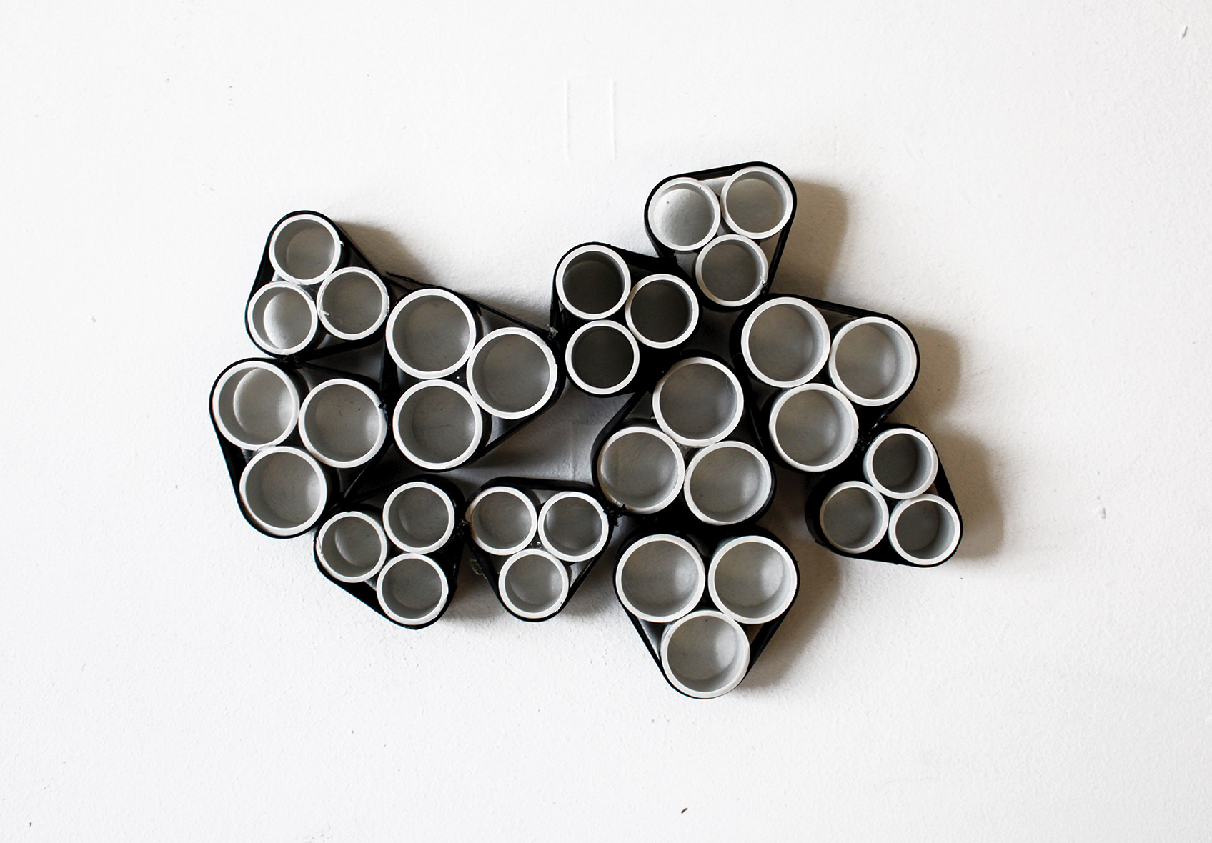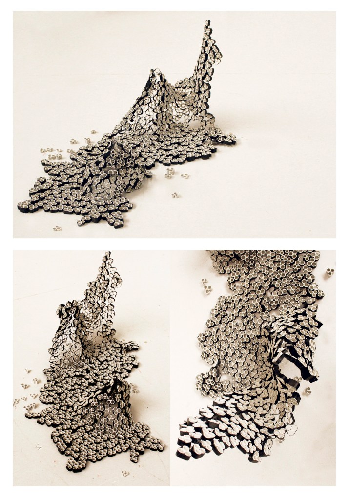 Avec comme contraintes deux matériaux : la chambre à air et les tubes en plastique PVC, nous avons imaginé des manières d’assemblages en questionnant les propriétés des matériaux.