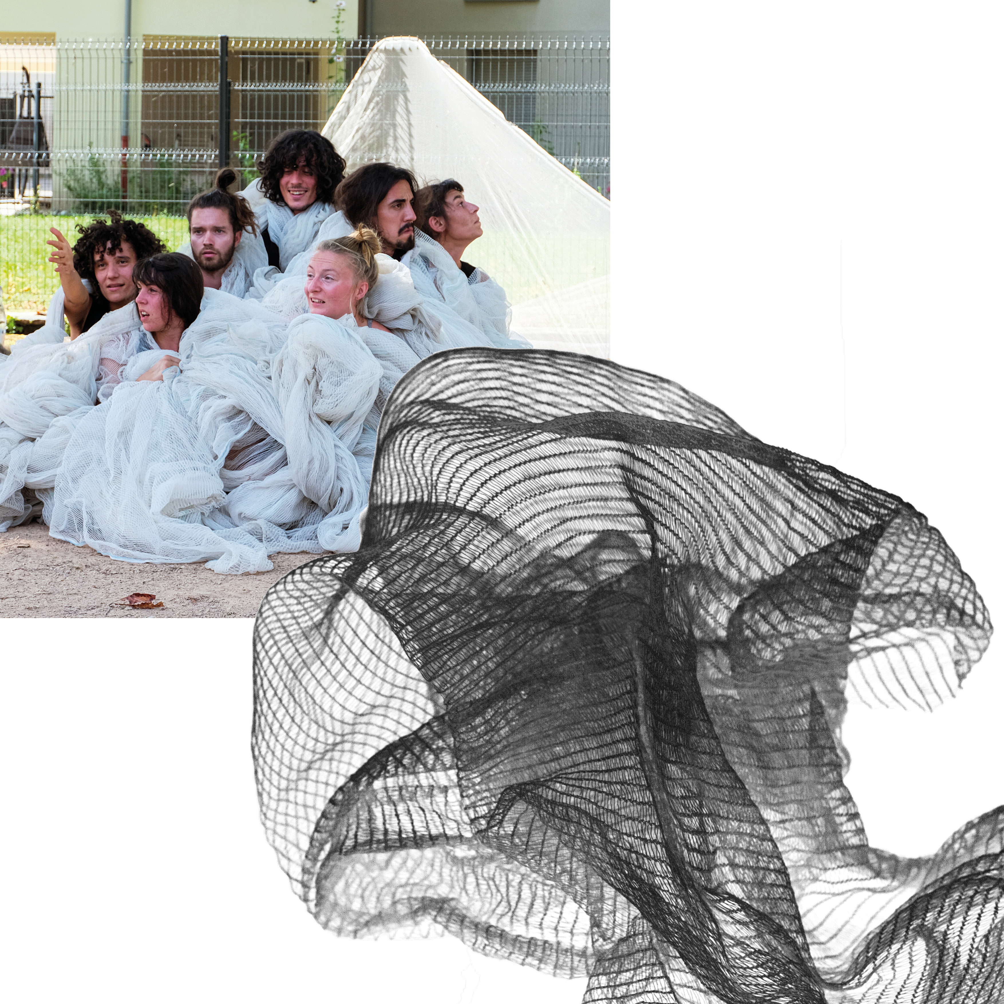 spectacle cirque & matière en espace public semi-végétalisé,