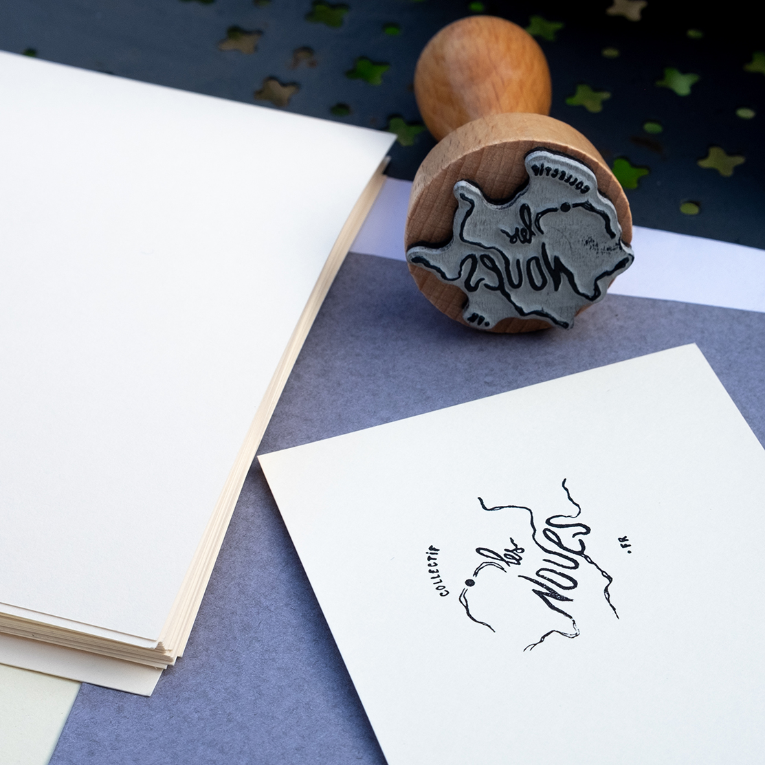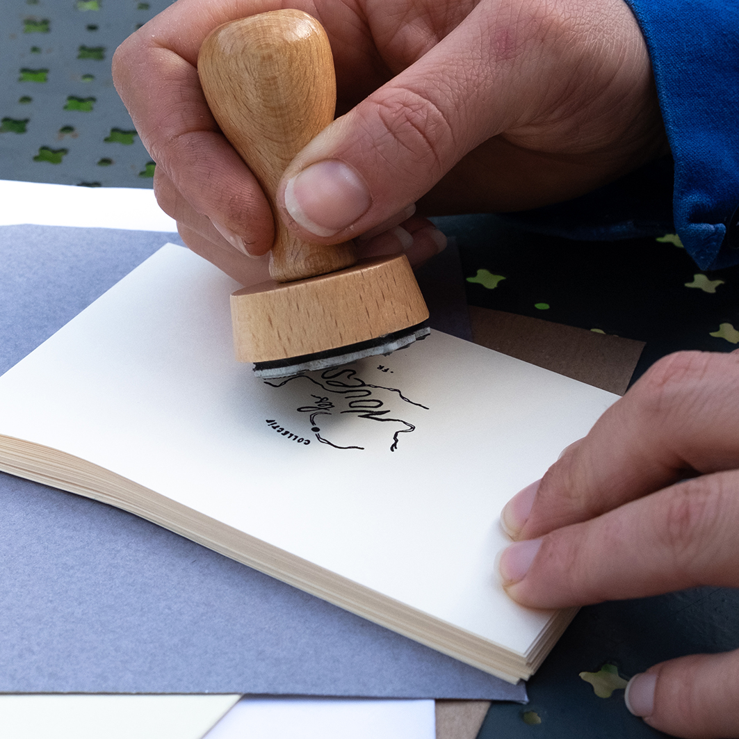 Déclinaisons en cartes de visites, stickers et tampons.